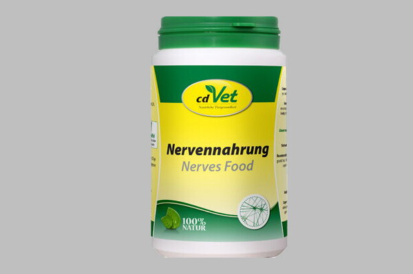 Ergänzungsfuttermittel für Hunde - Zusammensetzung: Algenkalk, Malzkeime, Melissenblätter, Pfingstrosenwurzel, Johanniskraut, Bierhefe. Die Nervennahrung hilft ängstlichen, unruhigen, gestressten oder leicht reizbaren Tieren, ohne ihren Wachzustand negativ zu beeinflussen. Durch die milde Rezeptur von Nervennahrung ist ein Effekt erst nach ca. 8 Tagen zu erwarten. Für aggressive Tiere ist dieses Produkt nicht geeignet.